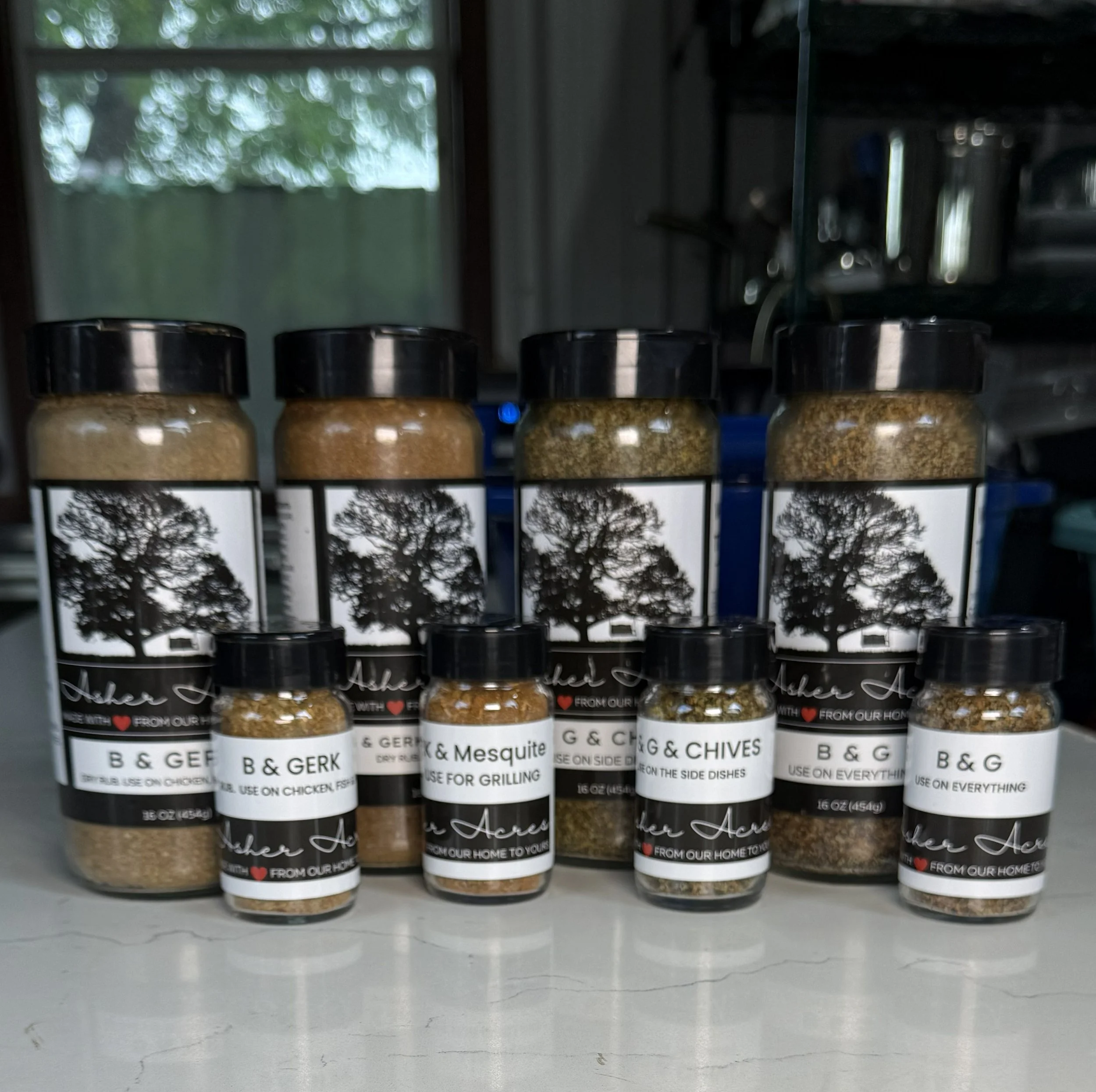 Welcome to Asher Acres, a family-owned and operated business located in the heart of the Texas Hill Country. We are passionate about creating high-quality, hand-crafted spice blends that add flavor and joy to every meal. Because food is more than fuel, it’s a way to bring families and communities together. And there’s nothing more important.